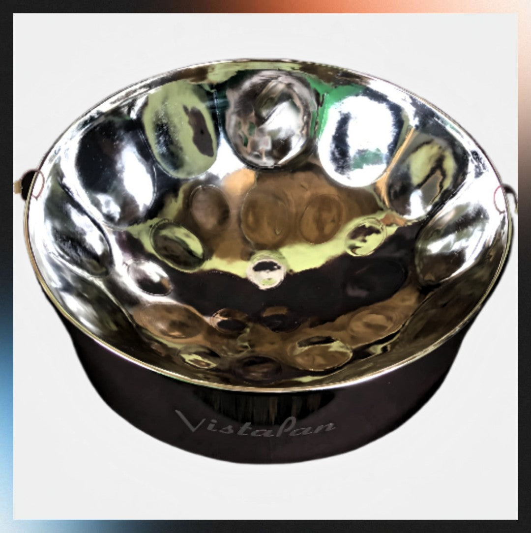 The Artist Supreme Low C Lead/Tenor is our top model and it can be compared to the best steelpan instruments produced anywhere in the world. It is suitable for discerning professional pan players and for those desiring the very best. It features a Solid Rim and the Super-Brite chrome finish. An Artist Supreme steelpan is chosen from a group of prepared pans as the one with the most promising tonal quality. Then, in addition to the final tuning, it receives 7 extra days of detailed tuning. This gives the Artist Supreme Master Tuner, who is the finest producing steelpan tuner in the world today, time to bring each note to its highest degree of perfection and balance. It first ships from Trinidad to VistaPan in New York for any small final adjustments due to shipping and then on to the customer by FedEx. A truly remarkable instrument in every way.